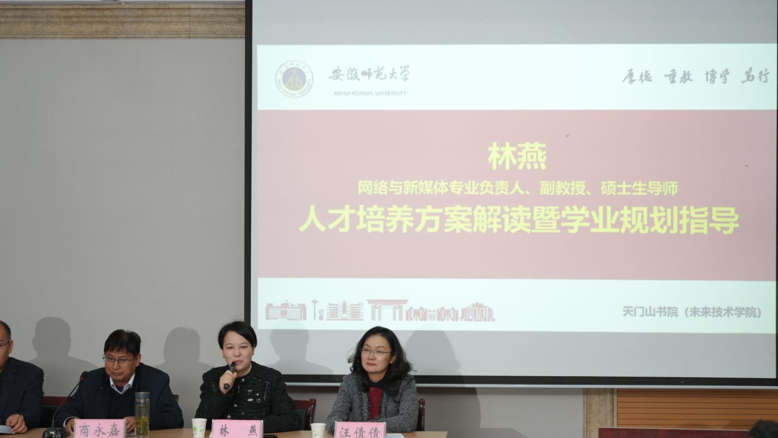 2025年10月22日上午10时,天门山书院(未来科技学院)在图书馆报告厅召开网络与新媒体专业新生见面会。新闻传播学院副院长赵昊、专业负责人林燕、天门山书院(未来技术学院)班子全体成员出席见面会。会议由书院院长商永嘉主持。